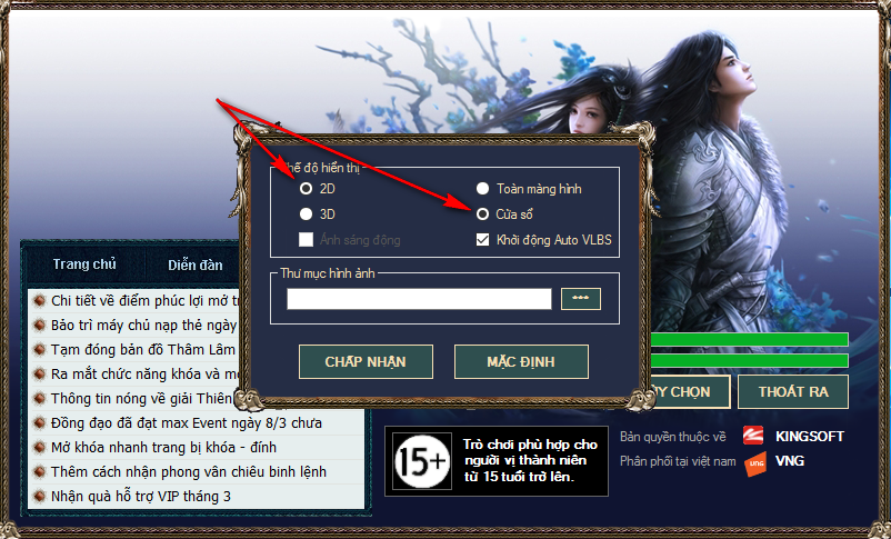 sau đó quý nhân sĩ chọn chế độ hiển thị mà mình yêu thích và nhấn vào "Chấp nhận" thì AutoUpdate sẽ tự chuyển đổi chế độ màng hình cho quý nhân sĩ, ở đây bổn trang chủ đã chọn chế độ 16bit và mở ở cửa sổ.
