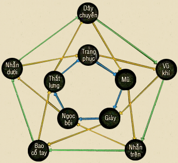 Cứ như vậy, một trang bị có thể kích hoạt thuộc tính âm của 2 trang bị khác.